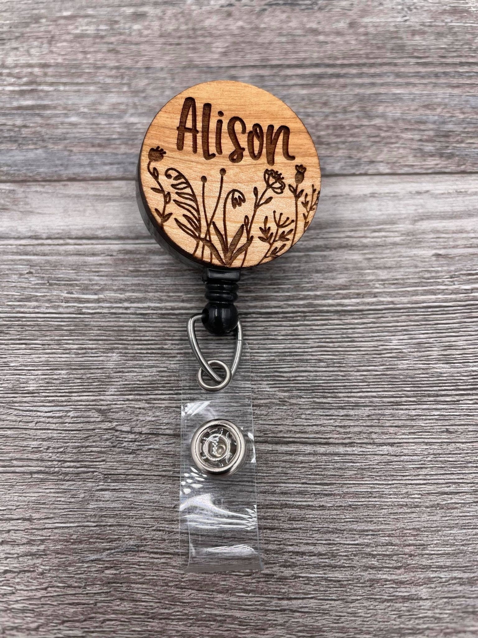 Simple Wildflower Badge With Name Custom Badge Reel Etsy